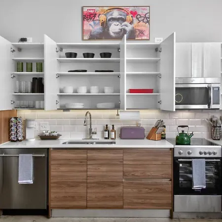 Una cocina completa ofrece a los huéspedes una serie de servicios como lavaplatos y un hervidor. El aeropuerto Love Field de Dallas está a 15 minutos en coche, y la parada de autobús O, a tan solo 10 minutos a pie del Apartamento Leopard Lounge | Funky 2Br Downtown Valet Pool Gym. Para disfrutar de una experiencia más emocionante, los huéspedes pueden practicar billar durante su estancia.